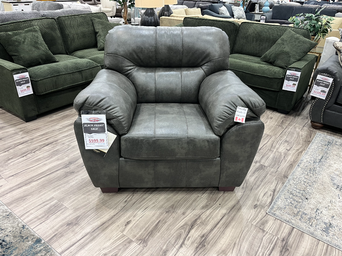 Add style and comfort to your living area with the 1601 Chair by Minhas Furniture. This inviting design features plush pillow arms and deep back cushions, offering the perfect balance of support and relaxation. Upholstered in a beautiful Two Tone Grey performance fabric, it’s both stylish and practical for everyday use. Crafted with a blend of 80% polyester and 20% polyurethane, the fabric provides durability, easy care, and a soft, supple feel that elevates any living space. Contemporary design with pillow arms and back cushions Upholstered in black performance fabric Fabric composition: 80% polyester, 20% polyurethane Width: 46"Read More