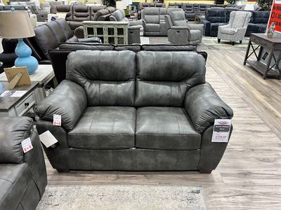 Add style and comfort to your living area with the 1601 Loveseat by Minhas Furniture. This inviting design features plush pillow arms and deep back cushions, offering the perfect balance of support and relaxation. Upholstered in a beautiful Two Tone Grey performance fabric, it’s both stylish and practical for everyday use. Crafted with a blend of 80% polyester and 20% polyurethane, the fabric provides durability, easy care, and a soft, supple feel that elevates any living space. Contemporary design with pillow arms and back cushions Upholstered in black performance fabric Fabric composition: 80% polyester, 20% polyurethane Width: 66"Read More
