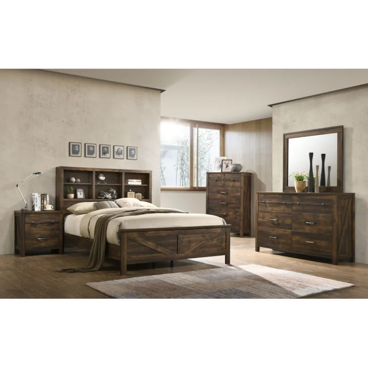 Welcome to your own personal bedroom oasis with the Lyla queen bed. Reclaimed wood-styled planks are finished in both light and dark shades of brown to add a stylishly weathered touch to your bedroom. A tall headboard with shelves gives you a spot to place your items. Four extra support legs tucked underneath help make sure you're resting comfortably all through the night. Sink into the Lyla bed tonight and let the worries of the world drift away.Read More