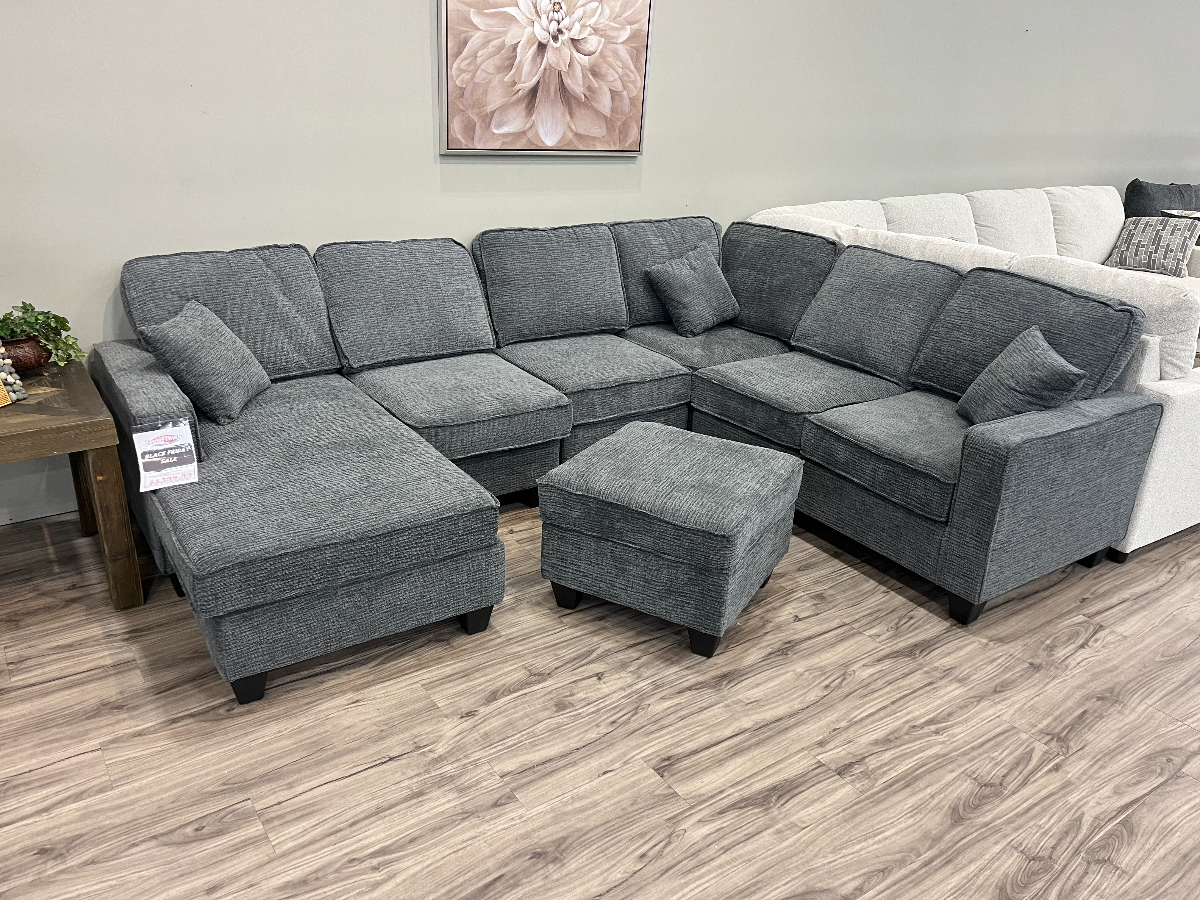 Bring comfort and modern style to your living space with this spacious 3-piece Axis sectional. Measuring 120" wide by 89" long, this sectional offers generous seating for family and guests, making it the perfect centerpiece for any living room.Designed for flexibility, the chaise can be positioned on either side to suit your room layout and personal preference. The matching ottoman adds versatility—use it as a footrest, coffee table, or extra seating when entertaining.With its contemporary design, plush cushions, and durable upholstery, this sectional delivers both comfort and practicality for everyday living.Read More