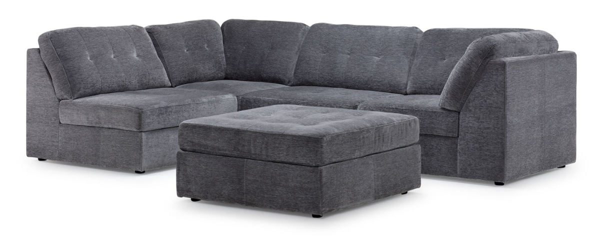Introducing the Jaxon 5-Piece Modular Sectional with Ottoman – the perfect blend of modern comfort and style for your living space. Crafted with meticulous attention to detail, this sectional seamlessly blends form and function. The plush, grey upholstery exudes sophistication, while the modular design and matching ottoman offers versatile seating arrangements to suit your unique preferences. Sink into the deep, cushioned seats that provide unparalleled relaxation, and enjoy the support of the sturdy frame beneath. The sleek design is complemented by the chic black legs, adding a touch of contemporary flair. Whether you're hosting guests or unwinding after a long day, the Jayce 5-Piece Modular Sectional with Ottoman offers the perfect balance of elegance and coziness. Elevate your home decor with this exceptional piece, designed to transform your living room into a haven of comfort and style.Read More