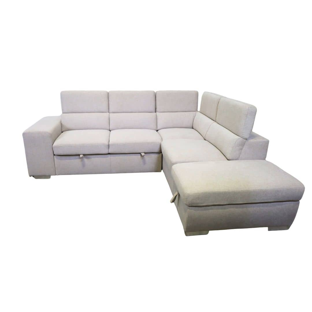 The Pamina Sectional is a versatile and stylish piece of furniture that offers both comfort and functionality. This sectional features a pull-out drawer style bed, perfect for accommodating guests or as a comfortable place to lounge. The sectional also includes storage, so you can keep your space organized and clutter-free. To add even more comfort and versatility, the Pamina comes with extra ottomans that can be used as additional seating or as a footrest. The adjustable headrests allow you to customize the sectional to your preferred level of comfort. The Pamina is available in two different colours, giving you the option to choose the one that best fits your decor. Upgrade your living space with the Pamina Sectional.Read More