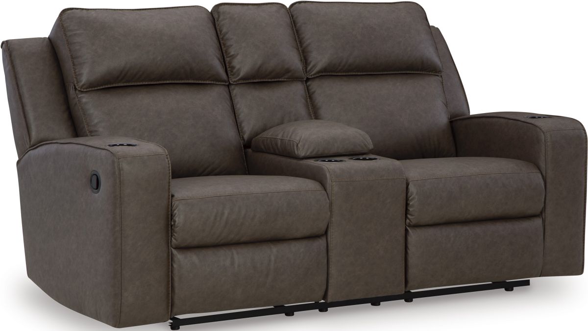 A padded center console with dual cup holders completes the experience. Sleek track arms elevate the look with a touch of modern sensibility. A padded center console with dual cup holders completes the experience.