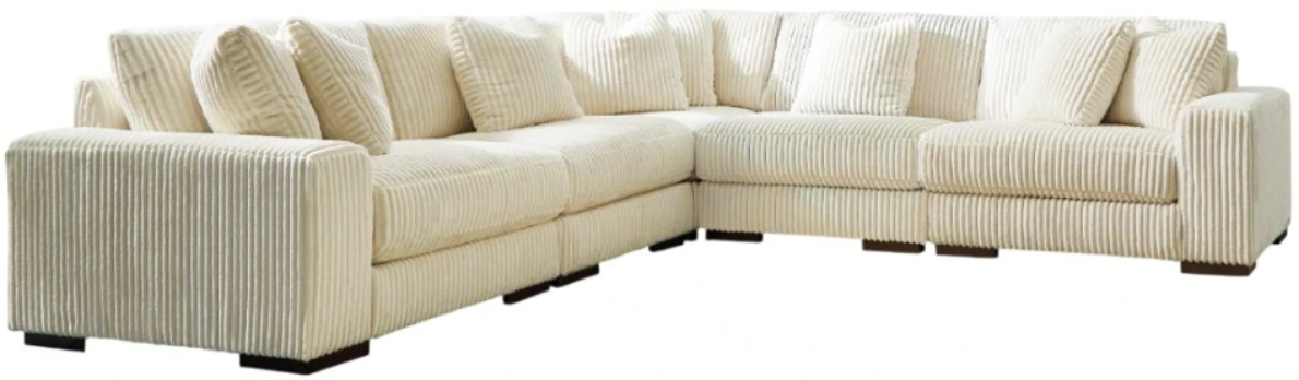 Plush and posh. Showcase your eye for on-trend texture with the statement-making cord upholstery of this sectional. Its stunningly soft fabric entices in an ivory hue, complementing contemporary color palettes. Sink into the cushions and plan to stay a while—this cozy living room centerpiece highlights your high-end approach to comfort and style.Read More